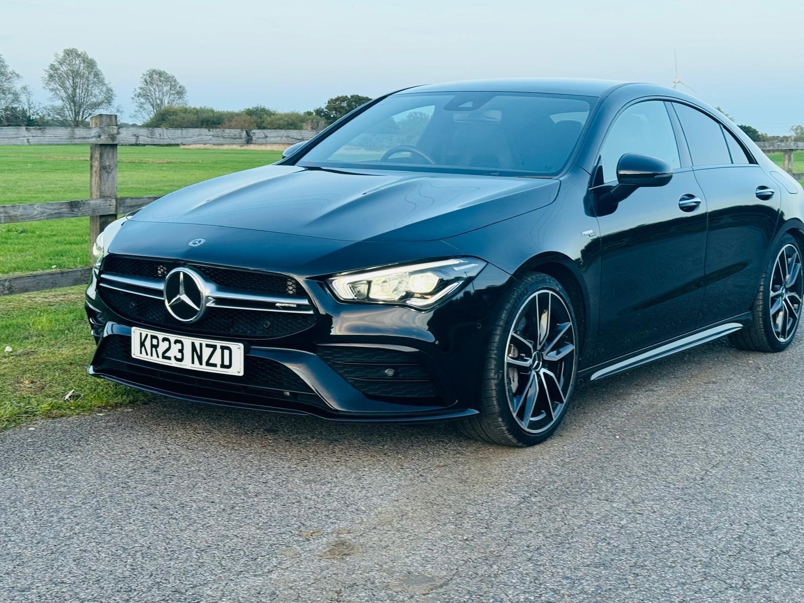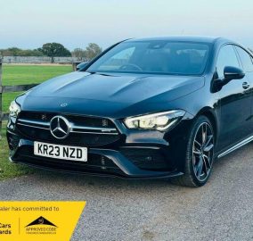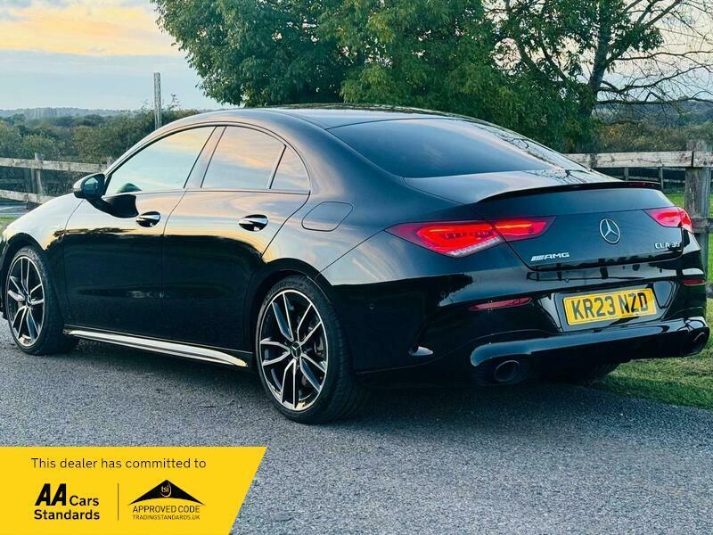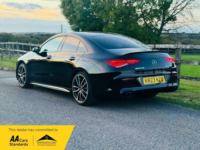 This 2023 Mercedes Benz CLA35 AMG Premium boasts a full dealership service history and has had only one owner from new. This striking four wheel drive model is powered by a 2.0 litre petrol engine and meets Euro 6 emissions standards. It comes equipped with a Parking Package featuring front and rear sensors along with a rear camera, and LED High Performance headlamps with integrated daytime running lights. For your convenience, it also includes dual Bluetooth interfaces, THERMOTRONIC luxury automatic climate control with a two zone system and display, and automatic headlamp activation. A 12 month MOT will be provided upon purchase, ensuring peace of mind.